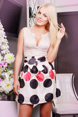 Blond kobieta w stylowy sukienka