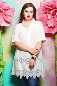 Dość brunetka dama w modny strój
