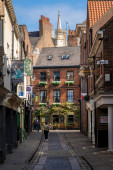 Zdjęcie "BREWERY WHARF, LEEDS, UK - WRZESIEŃ 30, 2022. Architektoniczny wizerunek rz ¹ du starych wiktoriañskich tarasowych domów lub kamienicy na brukowanej ulicy Brewery Wharf w Leeds." może być wykorzystywane do celów osobistych i komercyjnych zgodnie z warunkami zakupionej licencji Royalty-free. Obraz jest dostępny do pobrania w jakości wysokiej rozdzielczości do 5760x3840.
