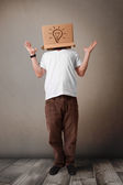 młody człowiek gestykulacji z kartonu na głowę z diagra