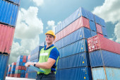 Zdjęcie "szczęśliwy człowiek przed kontener ciężarówka" może być wykorzystywane do celów osobistych i komercyjnych zgodnie z warunkami zakupionej licencji Royalty-free. Obraz jest dostępny do pobrania w jakości wysokiej rozdzielczości do 5760x3840.