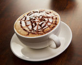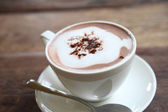 Kubek z gorącą polewą czekoladową z bitej śmietany i kakao aktyw