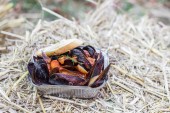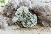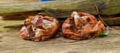 Naturalny surowy ogień Agate Półszlachetny Gemstone na drewnianym tle