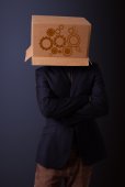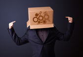 młody człowiek gestykulacji z kartonu na głowę z diagra