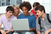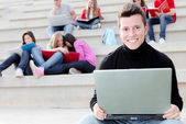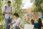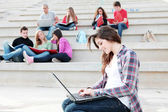 Zdjęcie "Studenci z laptopów i książki na terenie kampusu" może być wykorzystywane do celów osobistych i komercyjnych zgodnie z warunkami zakupionej licencji Royalty-free. Obraz jest dostępny do pobrania w jakości wysokiej rozdzielczości do 5760x3840.