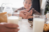 Zdjęcie "Smiling muslim boy giving turkish tea glass to blurred dad during iftar at home " może być wykorzystywane do celów osobistych i komercyjnych zgodnie z warunkami zakupionej licencji Royalty-free. Obraz jest dostępny do pobrania w jakości wysokiej rozdzielczości do 5760x3840.