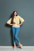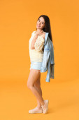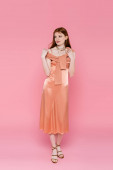 Zdjęcie "cheerful woman in blue pants and orange cardigan sitting on white cube and waving hand isolated on pink" może być wykorzystywane do celów osobistych i komercyjnych zgodnie z warunkami zakupionej licencji Royalty-free. Obraz jest dostępny do pobrania w jakości wysokiej rozdzielczości do 5760x3840.