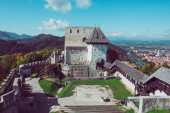Średniowieczny zamek w Celje, Słowenia. Turystyczne tło turystyczne