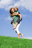 rodziny. Grupa szczęśliwy uśmiechający się siostry lub młoda mama z dziećmi