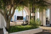 Zdjęcie "mieszkanie na poddaszu z oknem w centrum miasta; kryty ogród z drzewem i trawą; miejsce do pracy przy biurku; koncepcja zdalnej pracy w podróży; ilustracja 3D" może być wykorzystywane do celów osobistych i komercyjnych zgodnie z warunkami zakupionej licencji Royalty-free. Obraz jest dostępny do pobrania w jakości wysokiej rozdzielczości do 5760x3840.