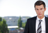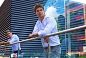 dwie atrakcyjne człowieka zatrzymać w pobliżu budynku nowoczesnego biznesu
