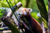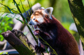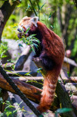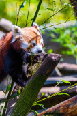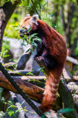 Czerwona panda - Ailurus Fulgens - portret. Słodkie zwierzę w zoo