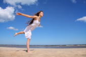 Zdjęcie "młoda kobieta wskakuje na wybrzeże" może być wykorzystywane do celów osobistych i komercyjnych zgodnie z warunkami zakupionej licencji Royalty-free. Obraz jest dostępny do pobrania w jakości wysokiej rozdzielczości do 5760x3840.