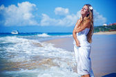 kobieta w białą sukienkę na wybrzeże