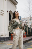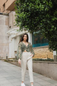 Zdjęcie "ładna kobieta z długimi brunetkami włosy i makijaż trzymając papierowy kubek z kawą i gazetą podczas spaceru w modnym stroju z torebką na miejskiej ulicy w pobliżu metalowego ogrodzenia i roślin w Stambule " może być wykorzystywane do celów osobistych i komercyjnych zgodnie z warunkami zakupionej licencji Royalty-free. Obraz jest dostępny do pobrania w jakości wysokiej rozdzielczości do 5760x3840.