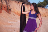 figlarny piękna, młoda dziewczyna z strój purpurowy