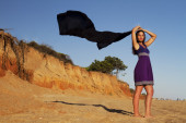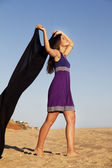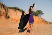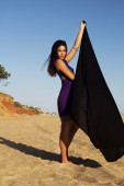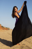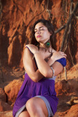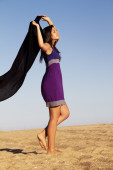 figlarny piękna, młoda dziewczyna z strój purpurowy