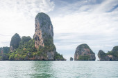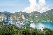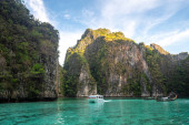 Panoramiczny widok na zatokę Majów na wyspach phi phi, Tajlandia