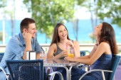 Zdjęcie "Para lub przyjaciół, rozmawiać w restauracji" może być wykorzystywane do celów osobistych i komercyjnych zgodnie z warunkami zakupionej licencji Royalty-free. Obraz jest dostępny do pobrania w jakości wysokiej rozdzielczości do 5760x3840.