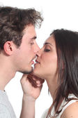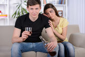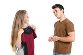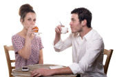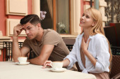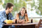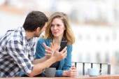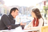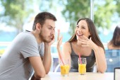 Mężczyzna i kobieta randki, ale ona jest nudna, a on mówi