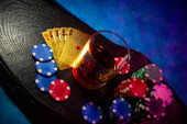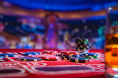 Zdjęcie "Kości siedzą na żetonach hazardu na czarnej drewnianej powierzchni. Zamazane tło. Kości na rozmytym tle bokeh." może być wykorzystywane do celów osobistych i komercyjnych zgodnie z warunkami zakupionej licencji Royalty-free. Obraz jest dostępny do pobrania w jakości wysokiej rozdzielczości do 5760x3840.