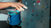 przycięty widok ręki młodego Afroamerykanina używającego talku na swoim sprzęcie, głaszczącego