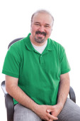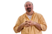 Poważny człowiek przejście rękami w agresywny wygląd