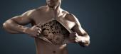 Zdjęcie "Człowiek teraing się jego skóry klatki piersiowej" może być wykorzystywane do celów osobistych i komercyjnych zgodnie z warunkami zakupionej licencji Royalty-free. Obraz jest dostępny do pobrania w jakości wysokiej rozdzielczości do 5760x3840.