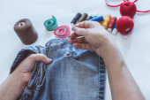 Zdjęcie "Kobieta potrafi swoją kreatywność przekształcając stare ubrania w nowe wzory.." może być wykorzystywane do celów osobistych i komercyjnych zgodnie z warunkami zakupionej licencji Royalty-free. Obraz jest dostępny do pobrania w jakości wysokiej rozdzielczości do 5760x3840.