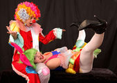 Zdjęcie "klaunów za parasol fali ręce na rozstanie" może być wykorzystywane do celów osobistych i komercyjnych zgodnie z warunkami zakupionej licencji Royalty-free. Obraz jest dostępny do pobrania w jakości wysokiej rozdzielczości do 5760x3840.