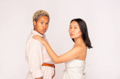 Zdjęcie "Dwie młode kobiety prezentują swój zmysł mody, pozując z wdziękiem w uzupełniających się stylach." może być wykorzystywane do celów osobistych i komercyjnych zgodnie z warunkami zakupionej licencji Royalty-free. Obraz jest dostępny do pobrania w jakości wysokiej rozdzielczości do 5760x3840.