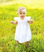 Słodkie dziecko siedzi na deskorolce na zewnątrz w mieście
