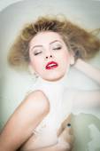 Zdjęcie "zbliżenie na oczy zamknięte dziewczyna pinup elegancka panienka z jedwabiu skóry, doskonałe blond włosy, zmysłowe usta czerwone usta otwarte w przyjemność zabawa zadowolony, relaks, układanie w czystej wodzie kopia tło" może być wykorzystywane do celów osobistych i komercyjnych zgodnie z warunkami zakupionej licencji Royalty-free. Obraz jest dostępny do pobrania w jakości wysokiej rozdzielczości do 5760x3840.