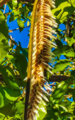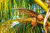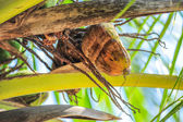 Dzięcioł czerwony brzucha wiertarka młotkiem na palm pnia drzewa w Playa del Carmen Quintana Roo Meksyk.