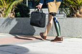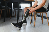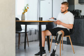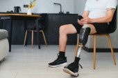 Zdjęcie "Młody mężczyzna siedzi na schodach z filiżanką kawy, pokazując swoją protezę nogi i swobodny styl." może być wykorzystywane do celów osobistych i komercyjnych zgodnie z warunkami zakupionej licencji Royalty-free. Obraz jest dostępny do pobrania w jakości wysokiej rozdzielczości do 5760x3840.