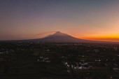 Zdjęcie "Zdjęcie lotnicze porannej atmosfery na wsi z bardzo majestatycznym widokiem na górę Merapi widocznym w oddali. Poranna atmosfera na wsi z wulkanem w tle" może być wykorzystywane do celów osobistych i komercyjnych zgodnie z warunkami zakupionej licencji Royalty-free. Obraz jest dostępny do pobrania w jakości wysokiej rozdzielczości do 5760x3840.