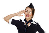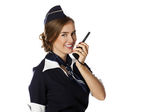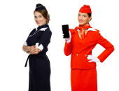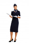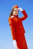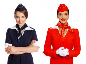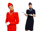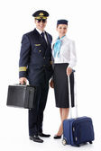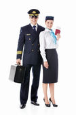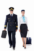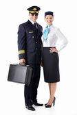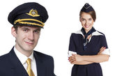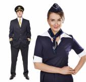 Captain of the aircraft and a beautiful flight attendant in a da
