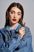 Przystojny młody facet z długimi włosami jest zagubiony w myślach podczas gdy w domu w stylowym ubraniu casual.