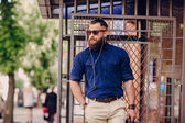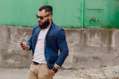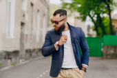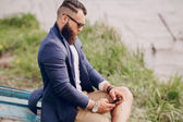 samotny brodaty mężczyzna, który wygląda jak milionerem