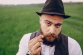 broda człowiek w dziedzinie samotny