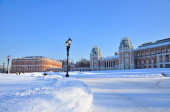 Zdjęcie "Wołga dwór, rosyjski park tematyczny wsi z klasyczną architekturą rosyjską w piękny słoneczny zimowy dzień z błękitnym niebem, w Harbin, Chiny " może być wykorzystywane do celów osobistych i komercyjnych zgodnie z warunkami zakupionej licencji Royalty-free. Obraz jest dostępny do pobrania w jakości wysokiej rozdzielczości do 5760x3840.