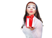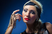 piękna młoda kobieta na sobie niebieski karnawałowe maski