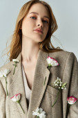 Zdjęcie "Piękna młoda kobieta z długimi brązowymi włosami ubrana w stylowy płaszcz z naturalnymi elementami" może być wykorzystywane do celów osobistych i komercyjnych zgodnie z warunkami zakupionej licencji Royalty-free. Obraz jest dostępny do pobrania w jakości wysokiej rozdzielczości do 5760x3840.