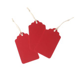 Różne puste tagi ze strunami wyizolowanymi na białym