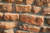 Zdjęcie "Zbliżenie starej ceglanej ściany, wietrzna, rustykalna faktura i widoczna zaprawa. Starzejące się cegły w kolorze czerwonym, brązowym i piaskowym, szorstka powierzchnia idealna do stosowania jako tło lub szczegóły konstrukcyjne. Zabytkowy mur murowany, kamień naturalny i struktura architektoniczna." może być wykorzystywane do celów osobistych i komercyjnych zgodnie z warunkami zakupionej licencji Royalty-free. Obraz jest dostępny do pobrania w jakości wysokiej rozdzielczości do 5760x3840.