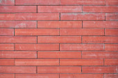 Close-up full-frame ściany z czerwonej cegły, bezszwowe poziome wzory i tło. Cegła tapety, cementowe stawy, tło lub projekt budowlany. Ilustrujące murowanie, architektura, urbanistyka z rustykalną i solidną strukturą ścian.