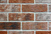 Ściana z czerwonej cegły z czystą zaprawą i jednolitym wzorem. Nowoczesna faktura murarska posiada gładkie powierzchnie ceramiczne, projekt architektoniczny, konstrukcję lub dekoracyjne tło. Symetryczny układ tapet.