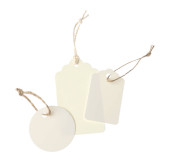 Wiele pustych tagów na białym tle, kolaż. Makieta do projektowania