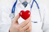 Lekarz medycyna mężczyzna ręce, trzymając czerwony zabawka serca