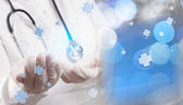naukowiec doktor ręka trzyma wirtualne struktury molekularnej